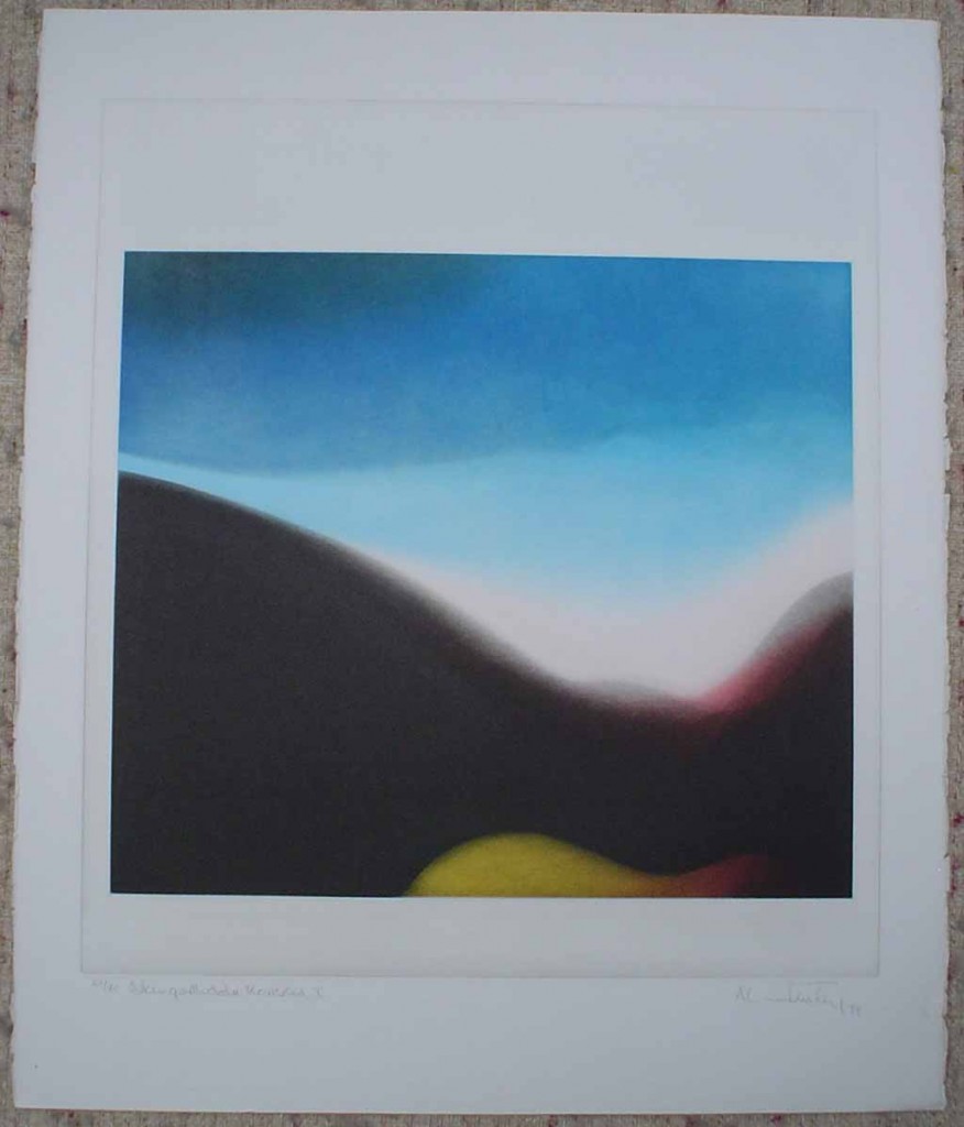 A large original 1979 hand-coloured etching with rich colours on thick heavy paper, signed, dated, numbered 21/90 and titled by the artist. Etching plate is vertical and image is horizontal. Certificate of Authenticity is included. Shipped rolled in a cardboard tube.