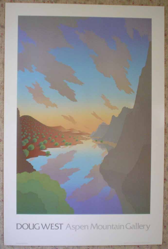 Born on the Wing, Aspen Mountain Gallery, 1984 by Doug West (American, contemporary) A large vintage 1984 original exhibition poster print in “as new” condition, signed in plate, offset lithograph reproduction, printed in USA. Shipped rolled in a cardboard tube. Title: Born on the Wing, Aspen Mountain Gallery, 1984 Artist: Doug West (American, Contemporay) Published: 1984 Publisher | Copyright: © 1984 Doug West, Born On The Wing; H.W. Rinehart Fine Arts, Inc, New York, NY Medium: offset lithograph reproduction Edition: open edition Signature: signed in plate Condition: Image: excellent | Margins: slight handling marks, vertical smudge in upper margin outside of image Orientation: Vertical Image Dimension (HxW) 31 x 21 inches | 78.75 x 53.5 cm Sheet Dimension (HxW) 38 x 25 inches | 96.5 x 63.5 cm Stock ID: WD602pv